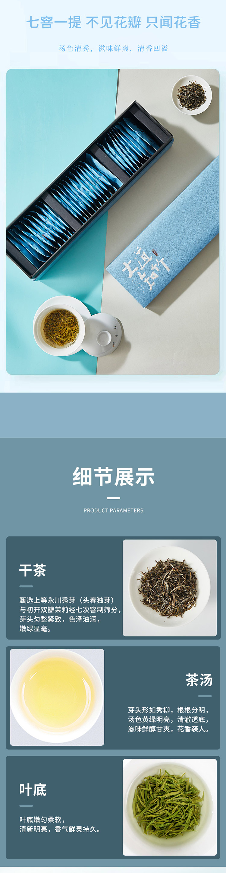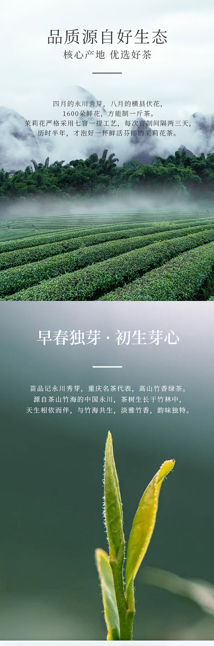 渝派茉莉花茶,苗品记秀芽白甄选重庆永川茶山竹海的优质茶青原料与福建福鼎的高山白茶原料进行科学拼配,采用现代白茶制作工艺和传统工艺相结合的方式精制而成,苗品记秀芽白突显了永川白茶的鲜和福鼎白茶的醇,并通过独有的白茶轻发酵工艺,让本品能够长期存放,并具有越存越香的特点。